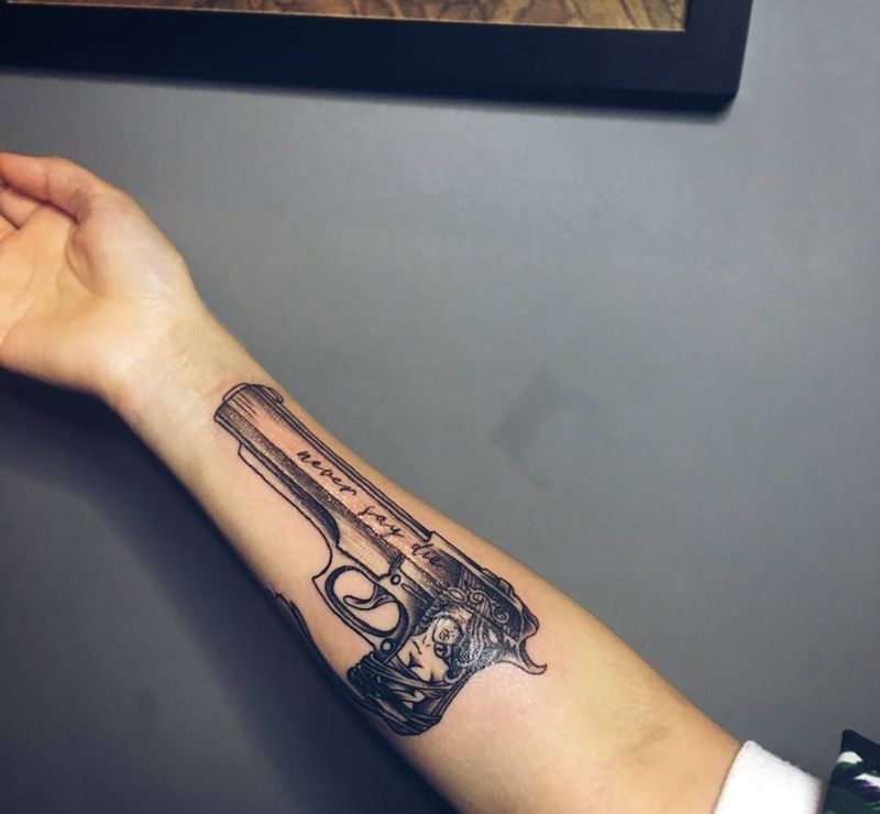 手枪纹身图片_成品手臂纹身图案