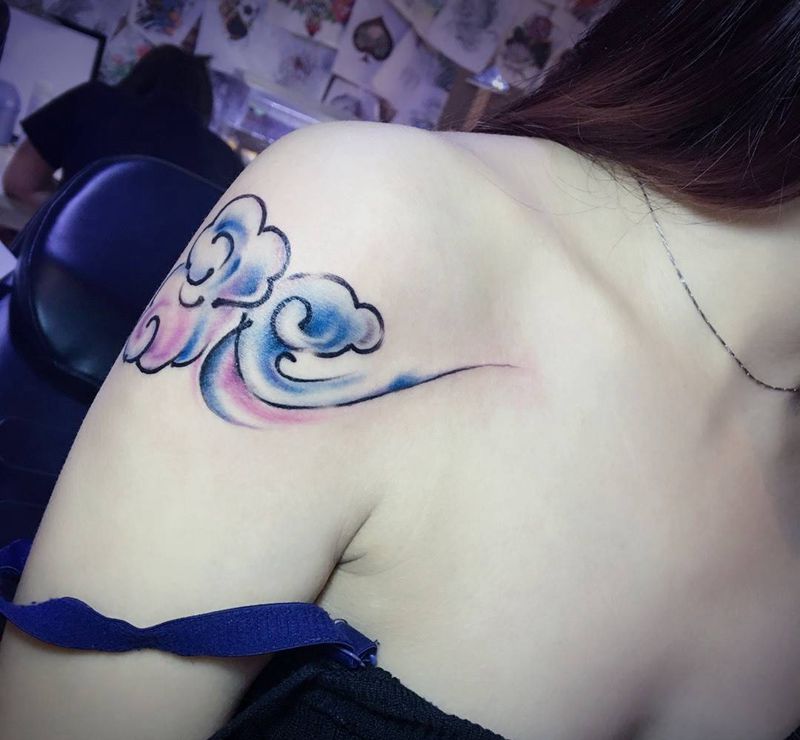 当前位置: 首页 >广东省广州市纹身店-番禺纹画社纹身图案>水彩云朵纹身图片_成品肩部清新纹身图案