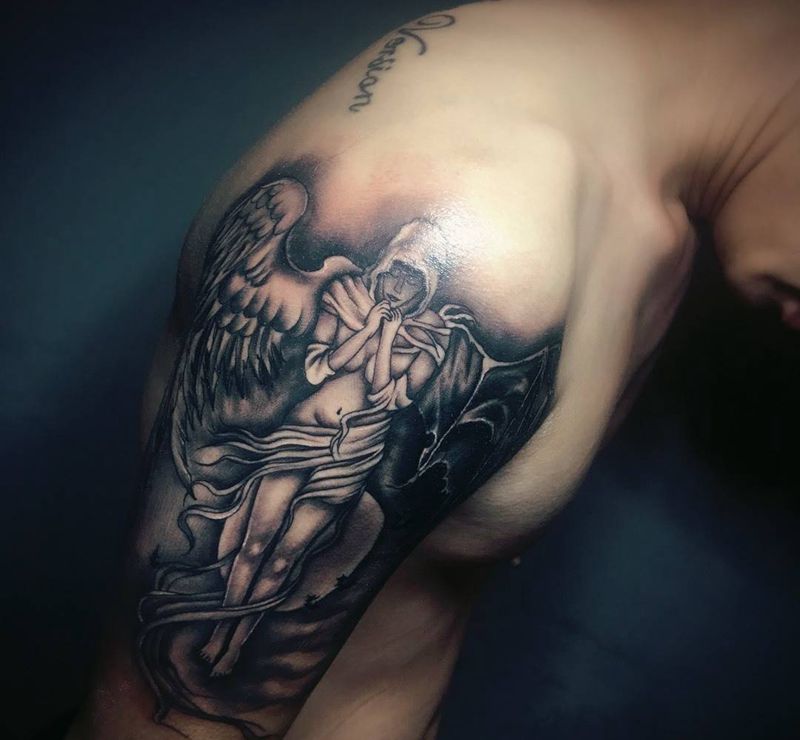 恶魔天使纹身图片_成品手臂欧美原创纹身图案