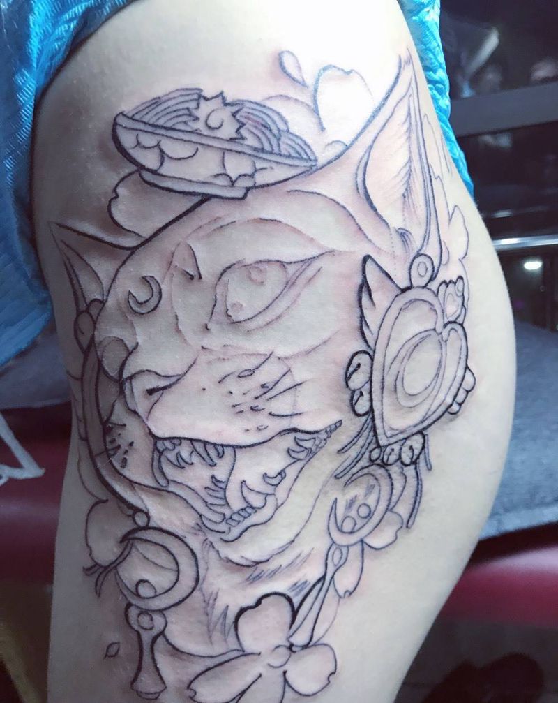 亚提密斯猫线条完成纹身图片