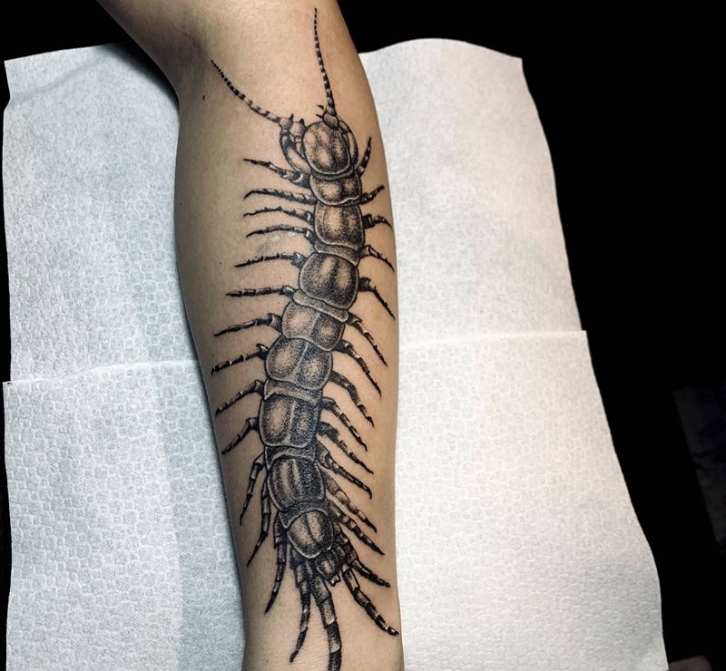 蜈蚣纹身图片_手部手臂欧美写实纹身图案