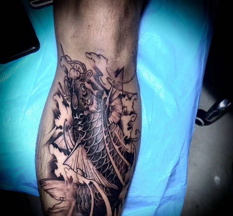 当前位置: 首页 >广东省广州市纹身店-枫刺青纹身图案>鲤鱼纹身图片_腿部老传统纹身图案