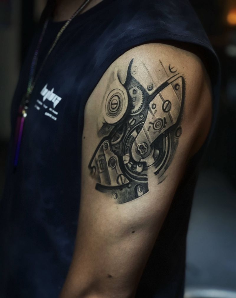 机械恢复后纹身图片_手臂欧美写实纹身图案