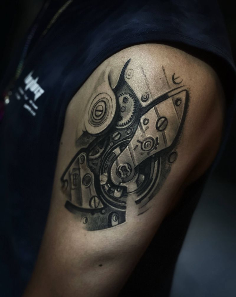 机械恢复后纹身图片_手臂欧美写实纹身图案