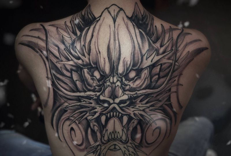 • T云龙九郎纹身图片_背部老传统云龙九郎纹身图案