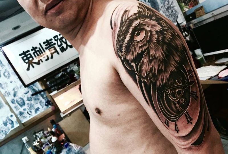 当前位置: 首页 >广东省广州市纹身店-東刺青纹身工作室纹身图案>预约手稿猫头鹰纹身图片