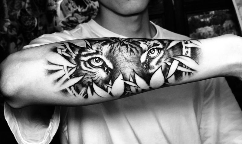 当前位置: 首页 >广东省广州市纹身店-東刺青纹身工作室纹身图案>写实老虎纹身图片