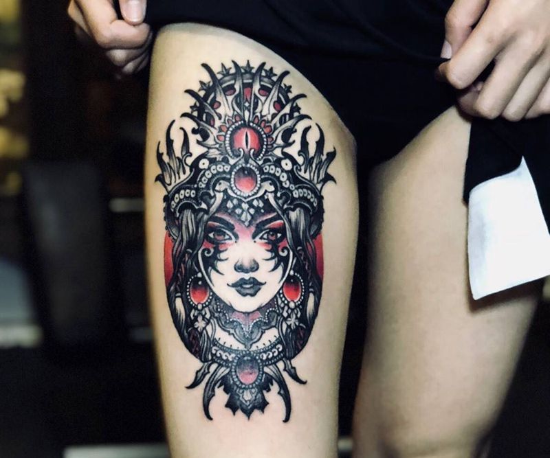 • T网红王老大花腿龙纹身图片_腿部新传统纹身图案