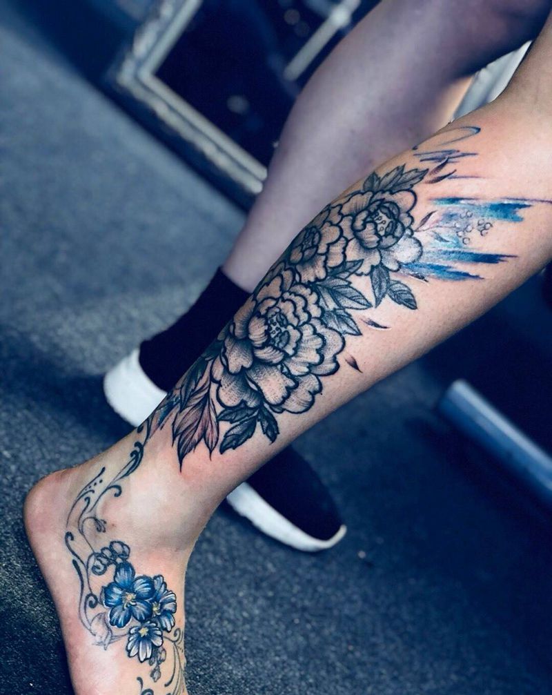 • T网红王老大花腿龙纹身图片_腿部新传统纹身图案