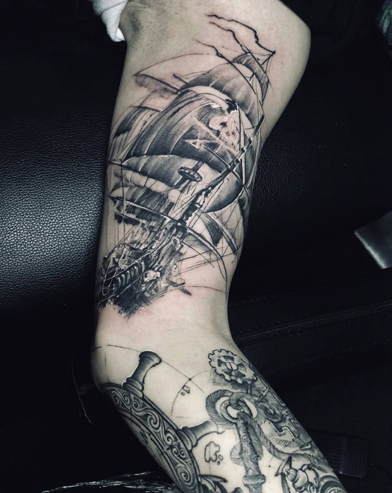 当前位置: 首页 >广东省广州市纹身店-東刺青纹身工作室纹身图案>航海花臂~一点点加纹身图片