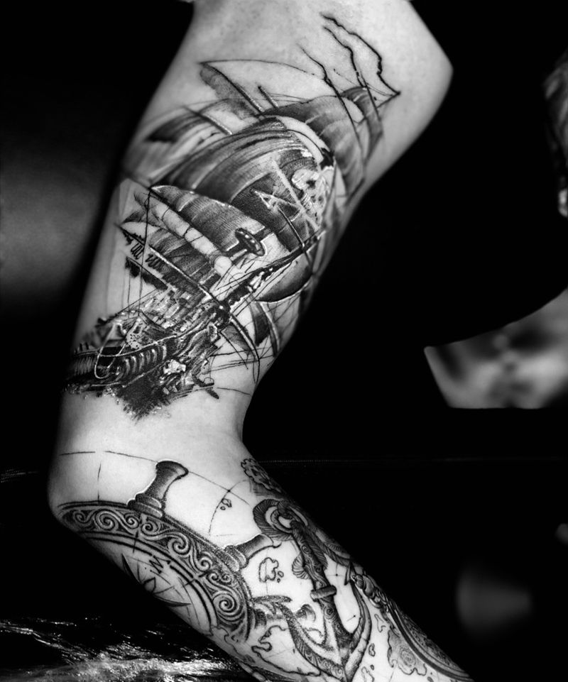当前位置: 首页 >广东省广州市纹身店-東刺青纹身工作室纹身图案>航海花臂~一点点加纹身图片