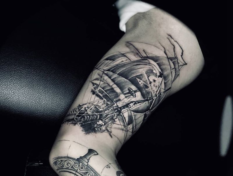 当前位置: 首页 >广东省广州市纹身店-東刺青纹身工作室纹身图案>航海花臂~一点点加纹身图片