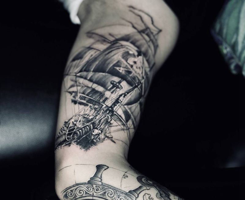 当前位置: 首页 >广东省广州市纹身店-東刺青纹身工作室纹身图案>航海花臂~一点点加纹身图片