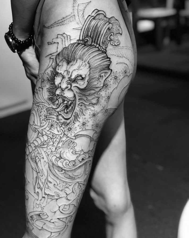 • T网红王老大花腿龙纹身图片_腿部新传统纹身图案