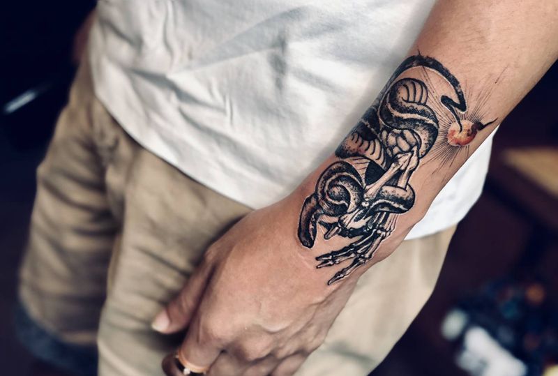 疤痕覆盖纹身图片_手臂点刺New School纹身图案