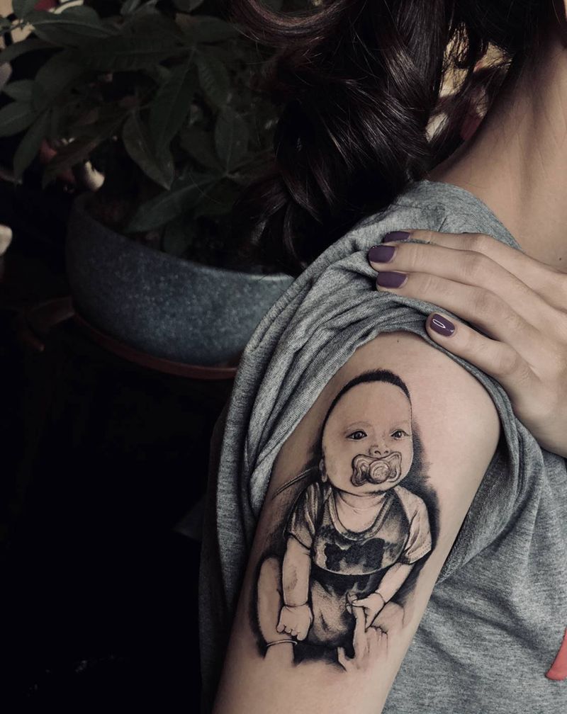 当前位置: 首页 >广东省广州市纹身店-東刺青纹身工作室纹身图案>母爱纹身图片_手臂欧美写实点刺纹身图案