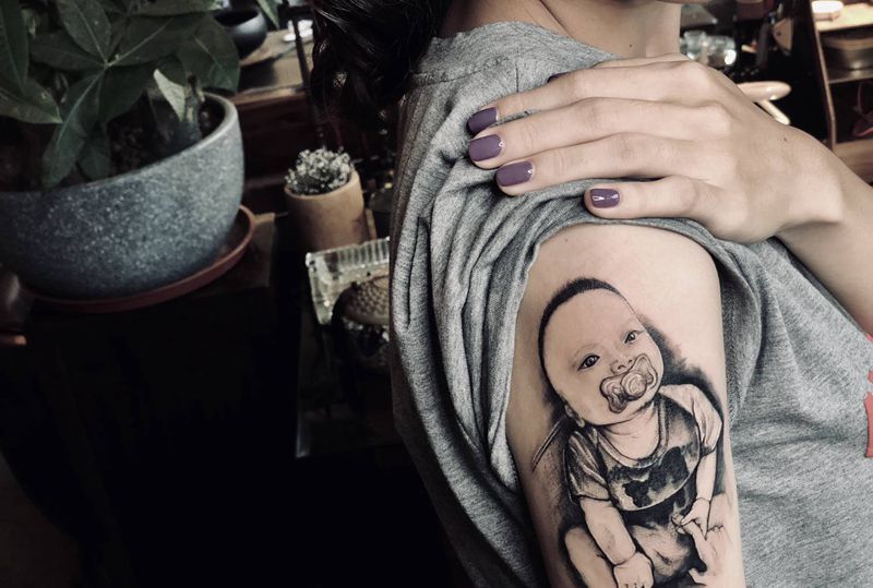 当前位置: 首页 >广东省广州市纹身店-東刺青纹身工作室纹身图案>母爱纹身图片_手臂欧美写实点刺纹身图案
