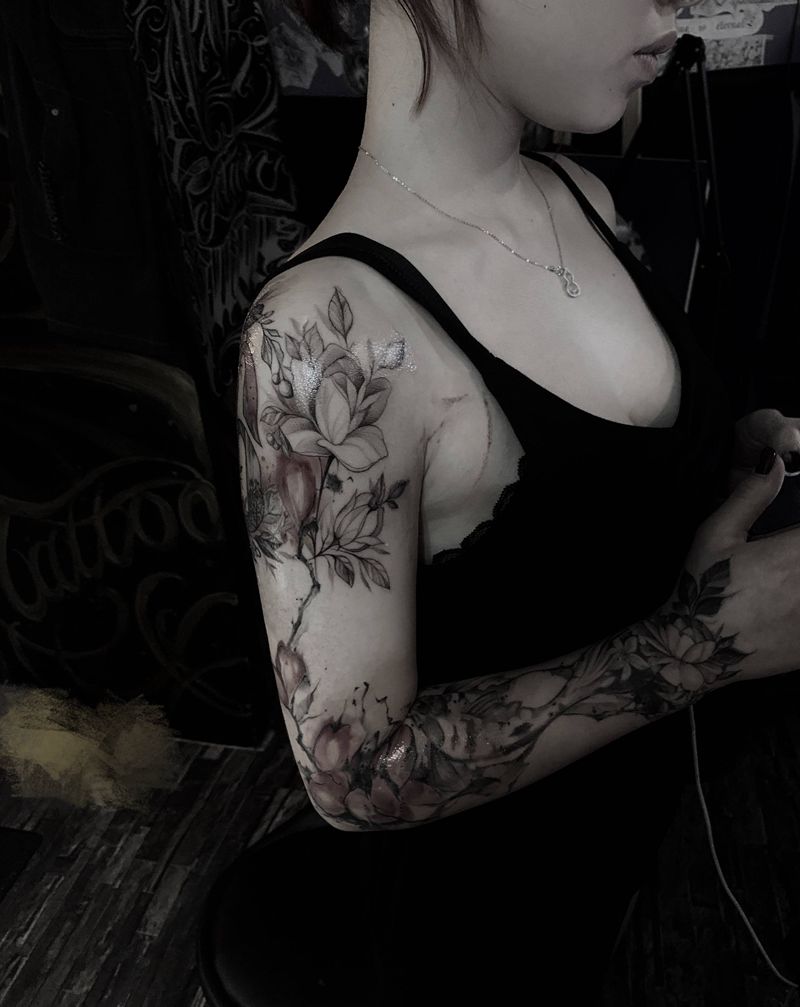 • 女性大花胸纹身_43张霸气漂亮的女性大花胸纹身图案作品