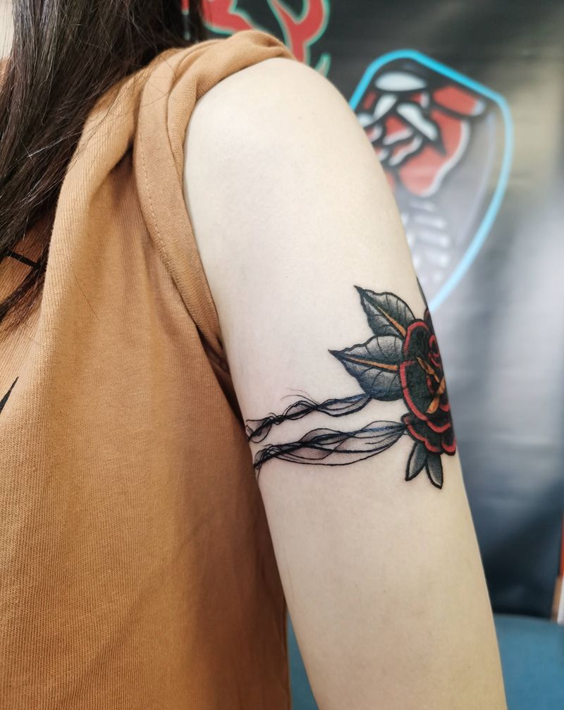 oldschool 玫瑰纹身图片_手臂Old School玫瑰纹身图案