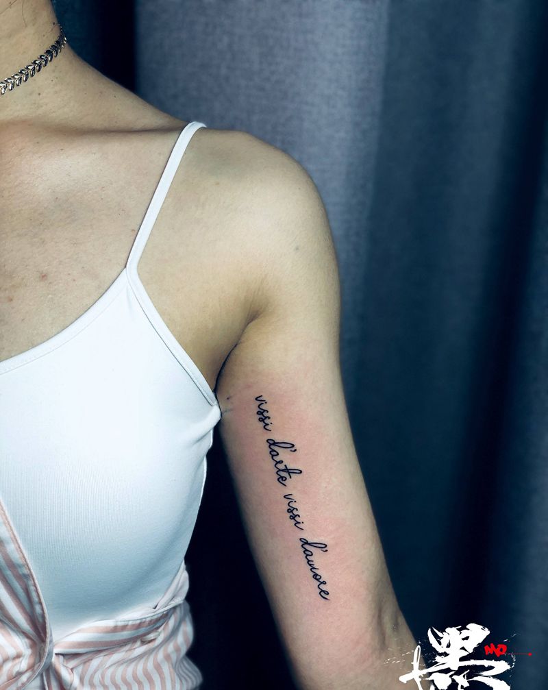 当前位置: 首页 >广东省广州市纹身店-墨刺青工作室纹身图案>字体小清新系列纹身图片_腿部胸部花体字纹身图案