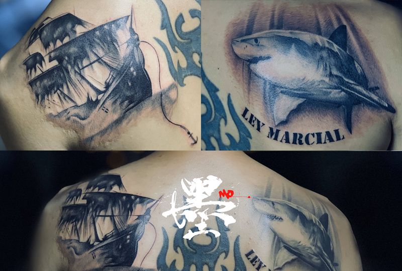 • 纹身吧推荐的披肩图腾半胛纹身图案作品展示