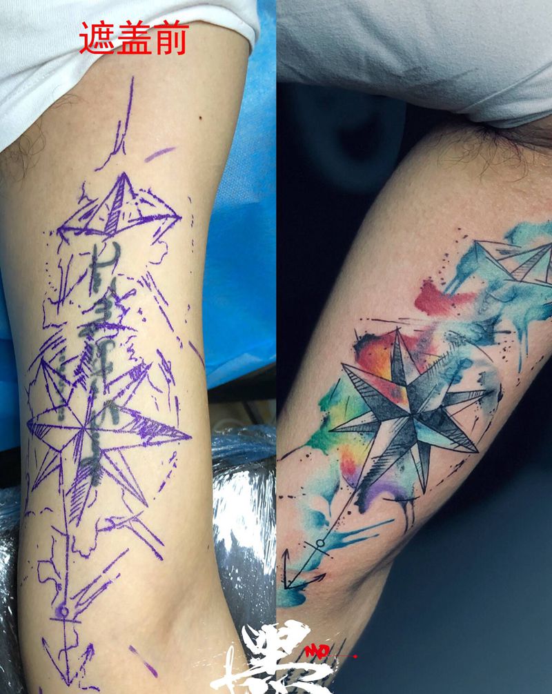 遮盖纹身作品纹身图片_手臂New School水彩纹身图案