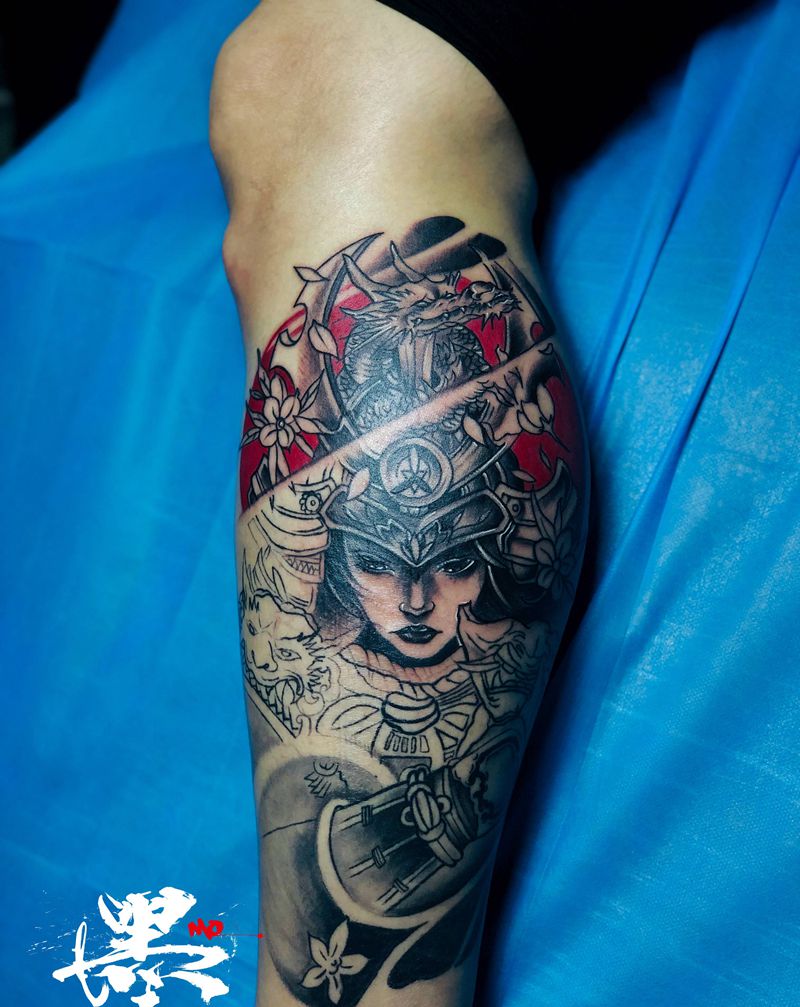 • T网红王老大花腿龙纹身图片_腿部新传统纹身图案