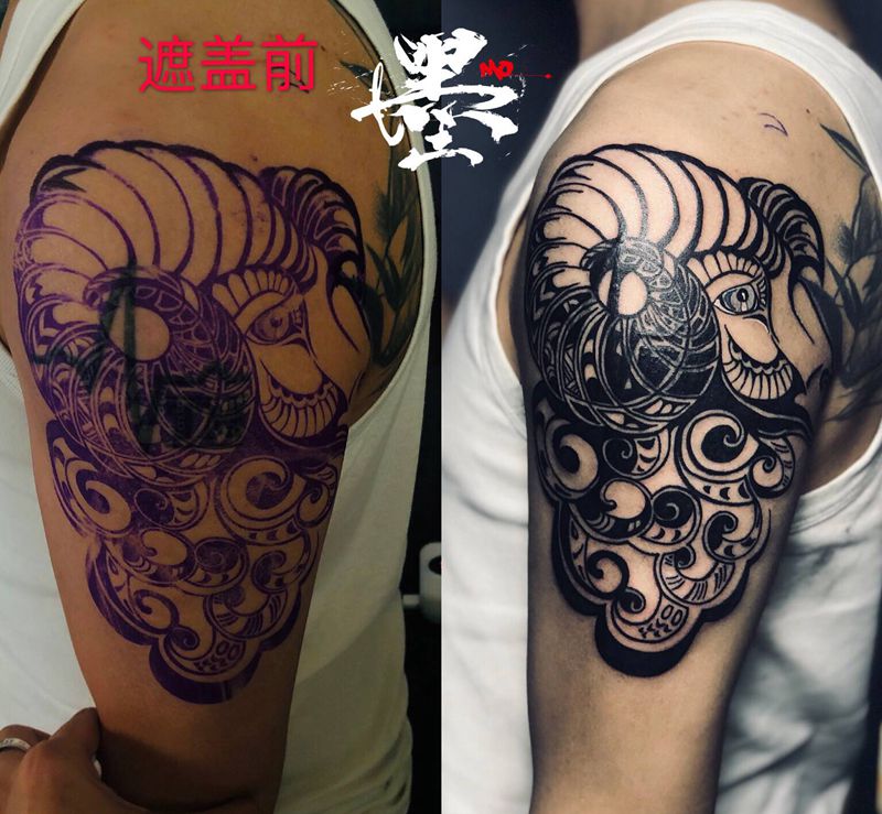 #遮盖纹身#系列4⃣️纹身图片_背部手臂New School纹身图案