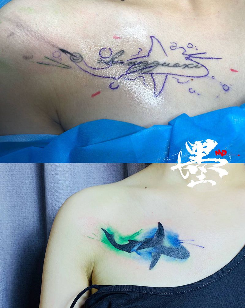 #遮盖纹身#系列4⃣️纹身图片_背部手臂New School纹身图案