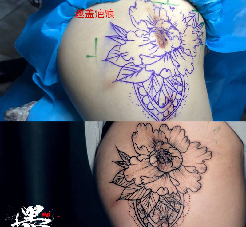 近期遮盖疤痕作品纹身图片_腿部手部New School点刺纹身图案