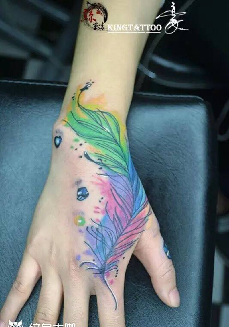 #羽毛#纹身图片_手部欧美植物纹身图案