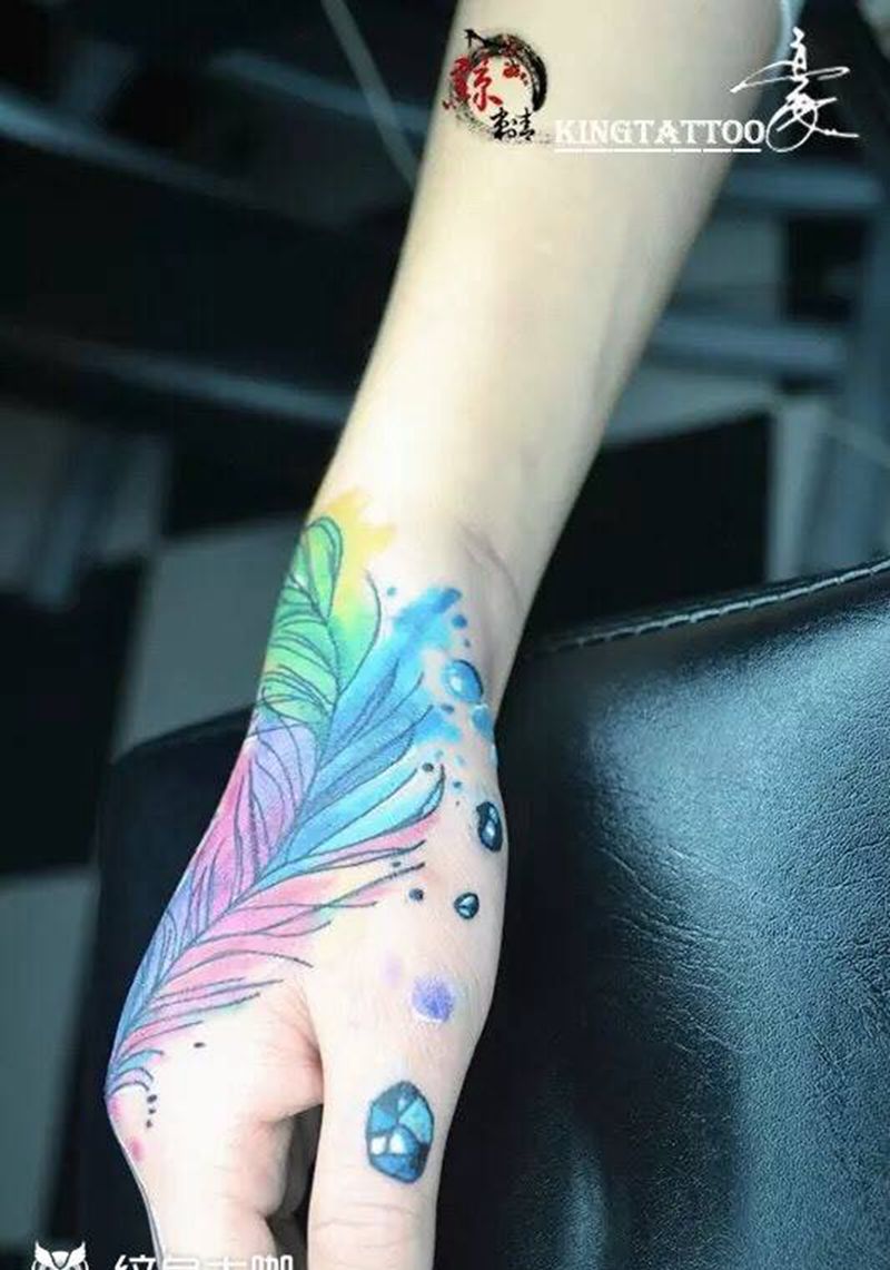 #羽毛#纹身图片_手部欧美植物纹身图案