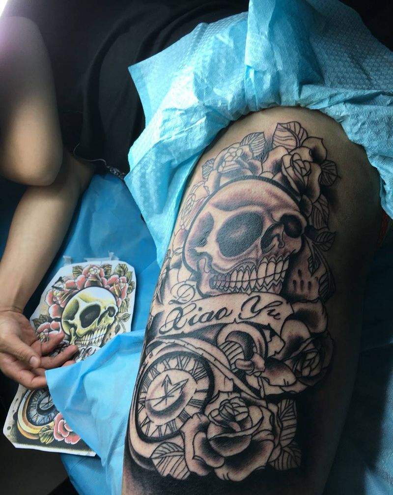 • T网红王老大花腿龙纹身图片_腿部新传统纹身图案