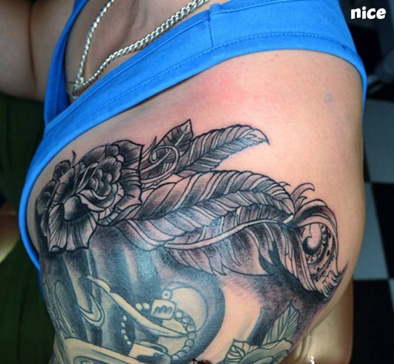 当前位置: 首页 >广东省广州市纹身店-墨刺青工作室纹身图案>玫瑰花羽毛纹身图片