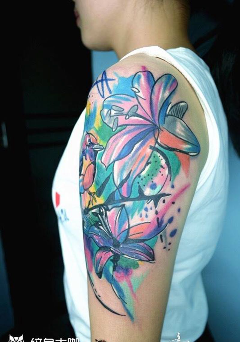 当前位置: 首页 >广东省广州市纹身店-墨刺青工作室纹身图案>遮盖纹身纹身图片_成品手臂欧美人物植物水彩纹身图案