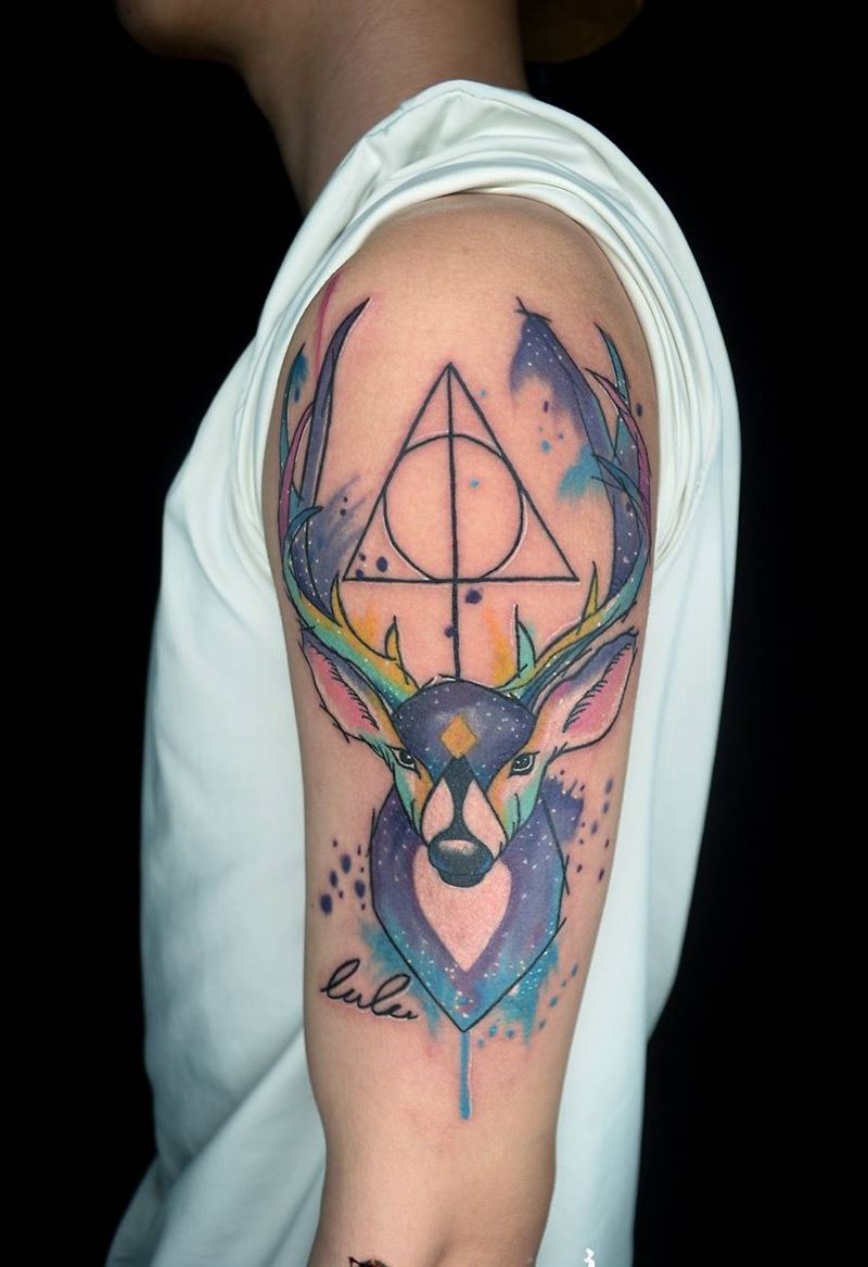 当前位置: 首页 >广东省广州市纹身店-墨刺青工作室纹身图案>水彩鹿纹身图片_成品手臂欧美花都广州水彩纹身图案