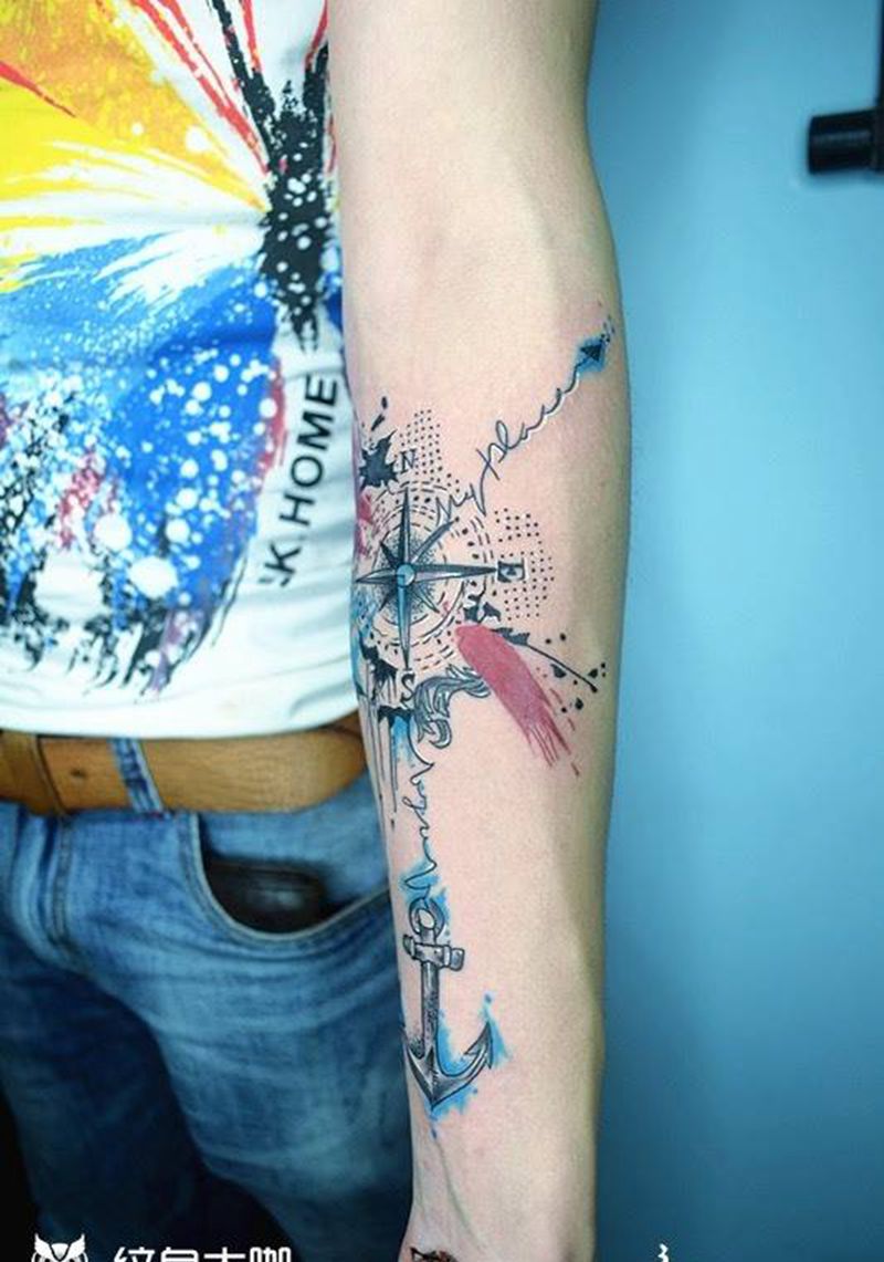 当前位置: 首页 >广东省广州市纹身店-墨刺青工作室纹身图案>指南针船锚纹身图片_成品手臂几何水彩纹身图案