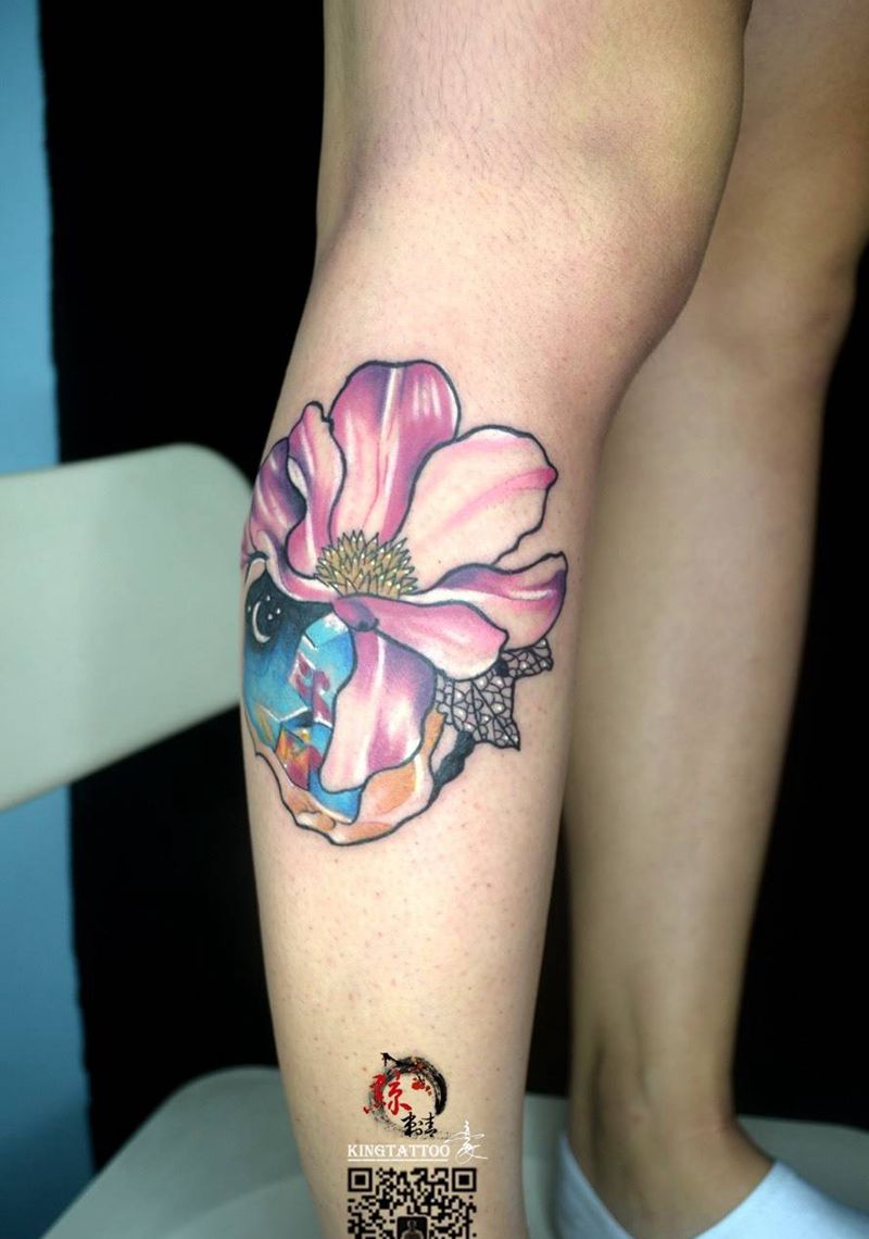 • T网红王老大花腿龙纹身图片_腿部新传统纹身图案
