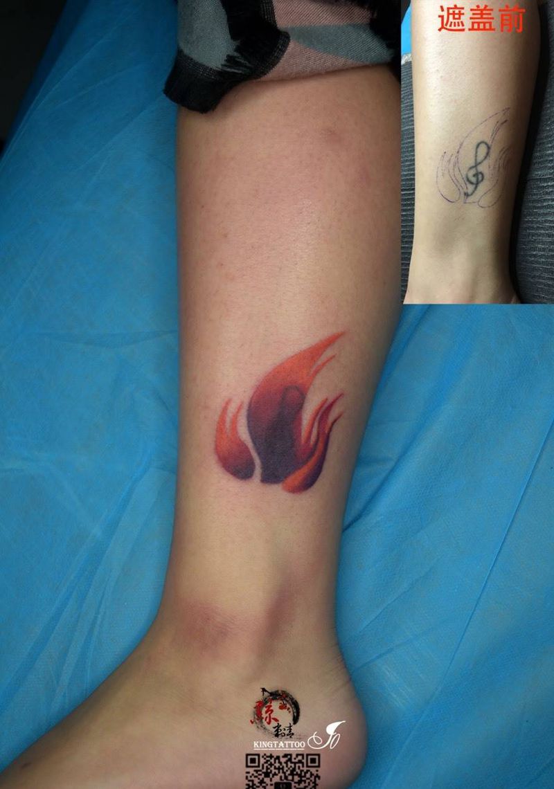 • T包小腿吹火男+阿多福纹身图片_腿部老传统新传统吹火男阿