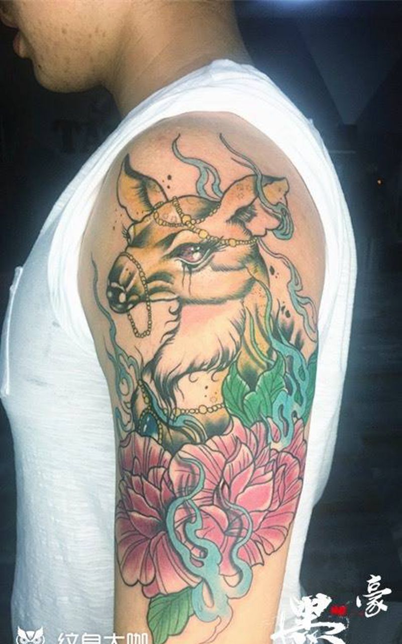 #半臂纹身#作品纹身图片_成品手臂欧美动物花都广州纹身图案