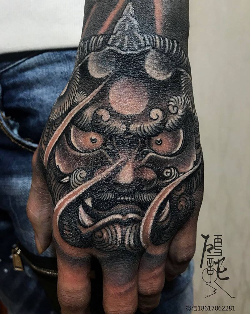 当前位置: 首页 >广东省深圳市纹身店-硬记刺青纹身图案>唐狮子纹身图片_手部老传统纹身图案