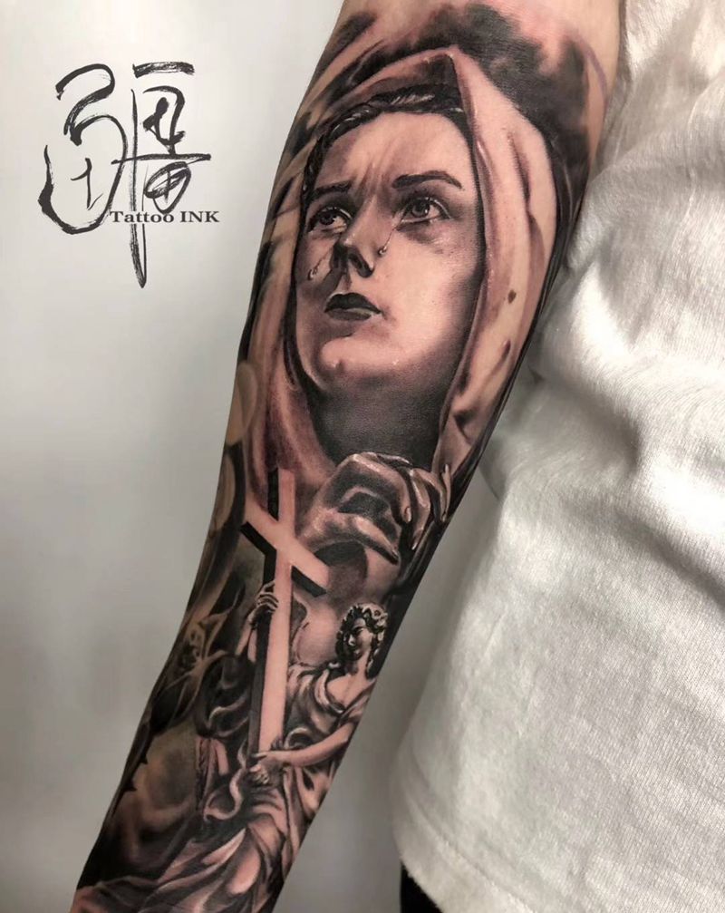 圣母纹身图片_手臂手部欧美写实圣母纹身图案