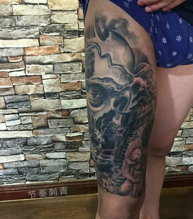 黑灰满背纹身图案