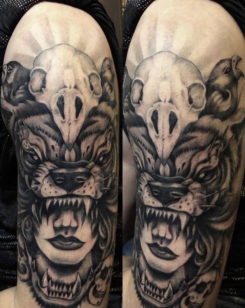 • 纹身吧推荐的披肩图腾半胛纹身图案作品展示