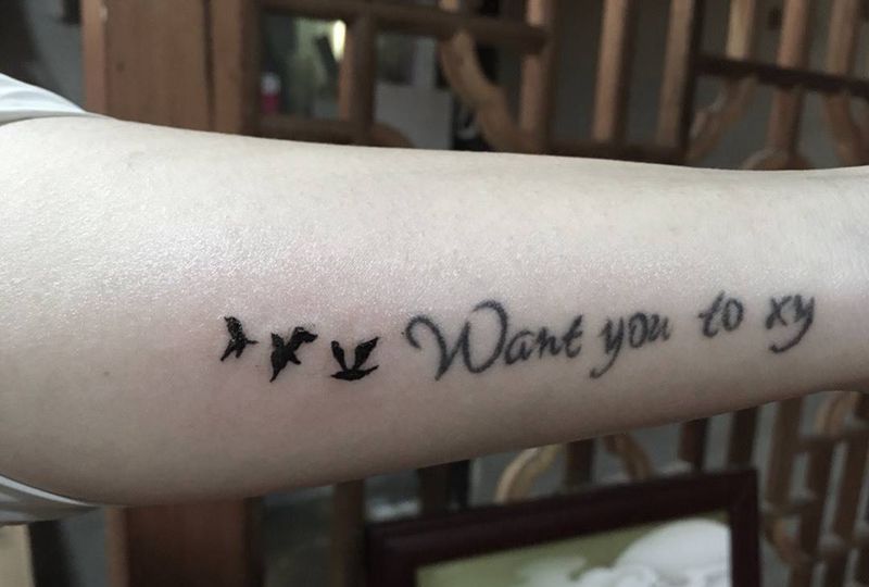 当前位置: 首页 >广东省深圳市纹身店-刺器纹身图案>today纹身图片_腿部手臂花体字几何鸟兔子英文纹身图案