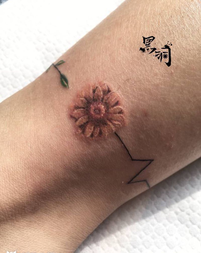 当前位置: 首页 >广东省深圳市纹身店-刺器纹身图案>墙上的向日葵纹身图片_脚部水彩直线脚踝向日葵纹身图案