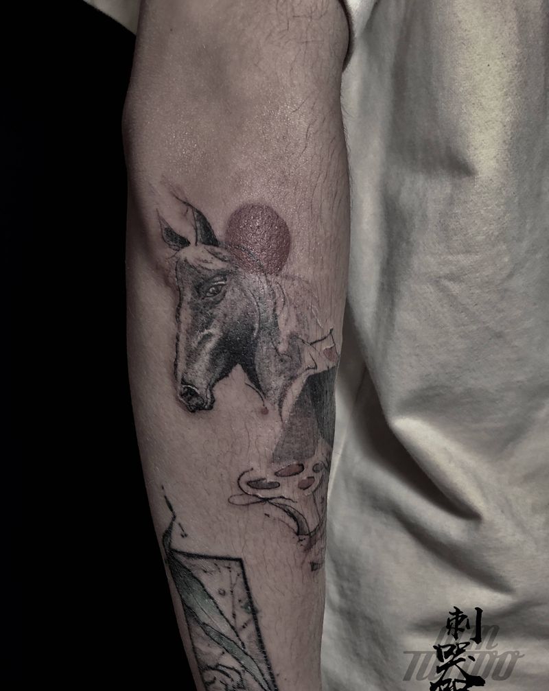 当前位置: 首页 >广东省深圳市纹身店-刺器纹身图案>侠纹身图片_手臂水墨阿拉伯马西部牛仔纹身图案
