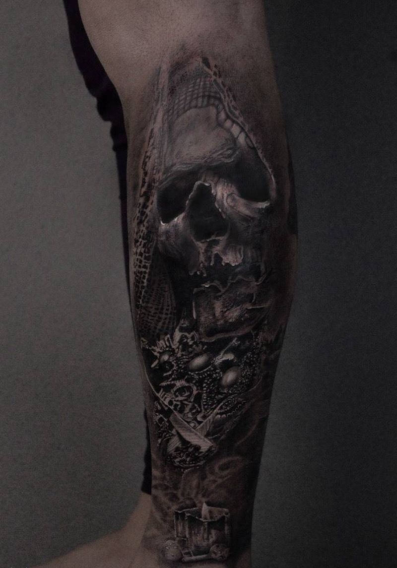当前位置: 首页 >广东省深圳市纹身店-刺器纹身图案>魇纹身图片_脚部腿部欧美写实骷髅蜡烛死亡纹身图案