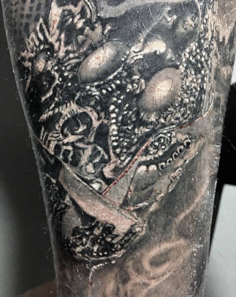 当前位置: 首页 >广东省深圳市纹身店-刺器纹身图案>魇纹身图片_脚部腿部欧美写实骷髅蜡烛死亡纹身图案