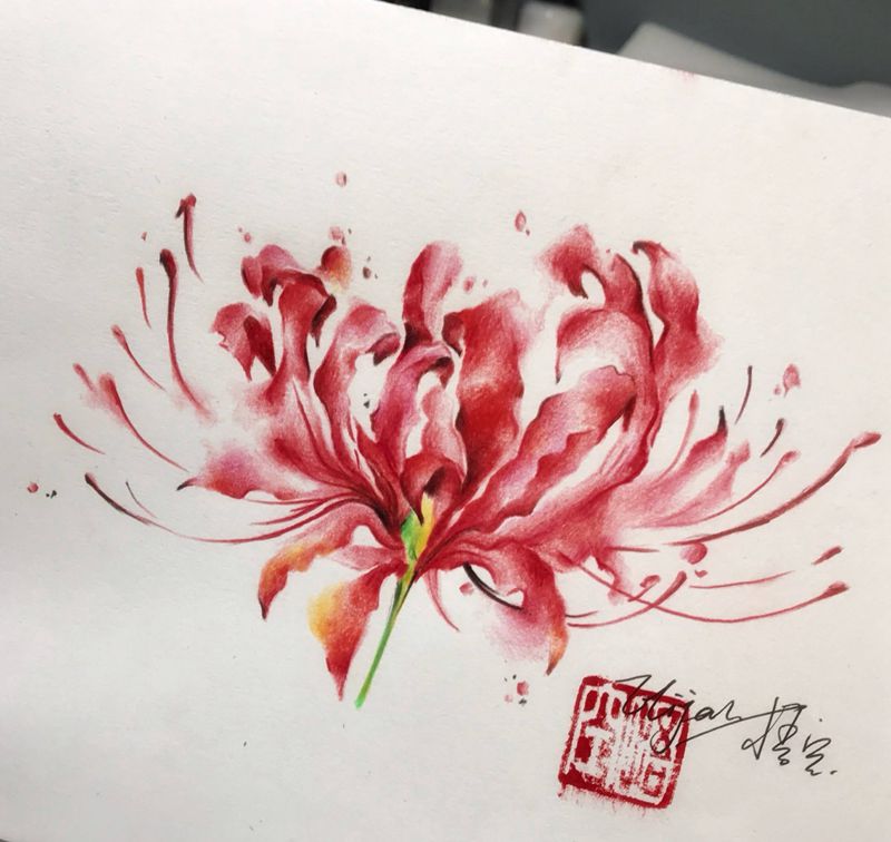 一组15张莲花纹身手